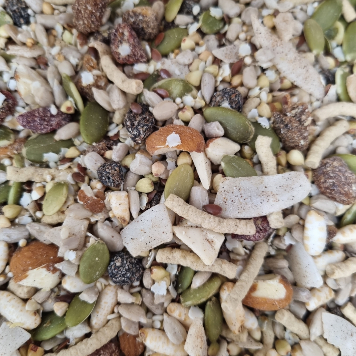 DESCRIPTION: Made on the Bellarine Peninsula By Adelia Fine Foods. This beautiful mix includes Organic quinoa, amaranth and rice bran straws are blended with juicy cranberries, organic apricots, crunchy pepitas and organic sunflower kernels, then tossed with almonds and fruit sourced from the Murray region, organic coconut and a hint of cinnamon.