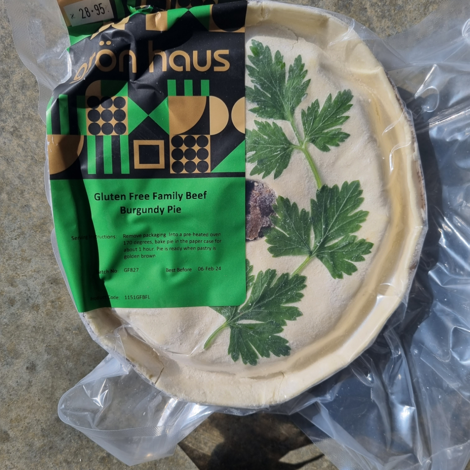 DESCRIPTION: A hearty beef burgundy ragout baked in our signature Gron Haus flaky gluten free shortcrust pastry. This pie is made with onion and garlic products and may not be suitable for those with fructose malabsorption allergies.Delivered snap frozen and vacuum packed, ready to be baked fresh, or for the freezer
