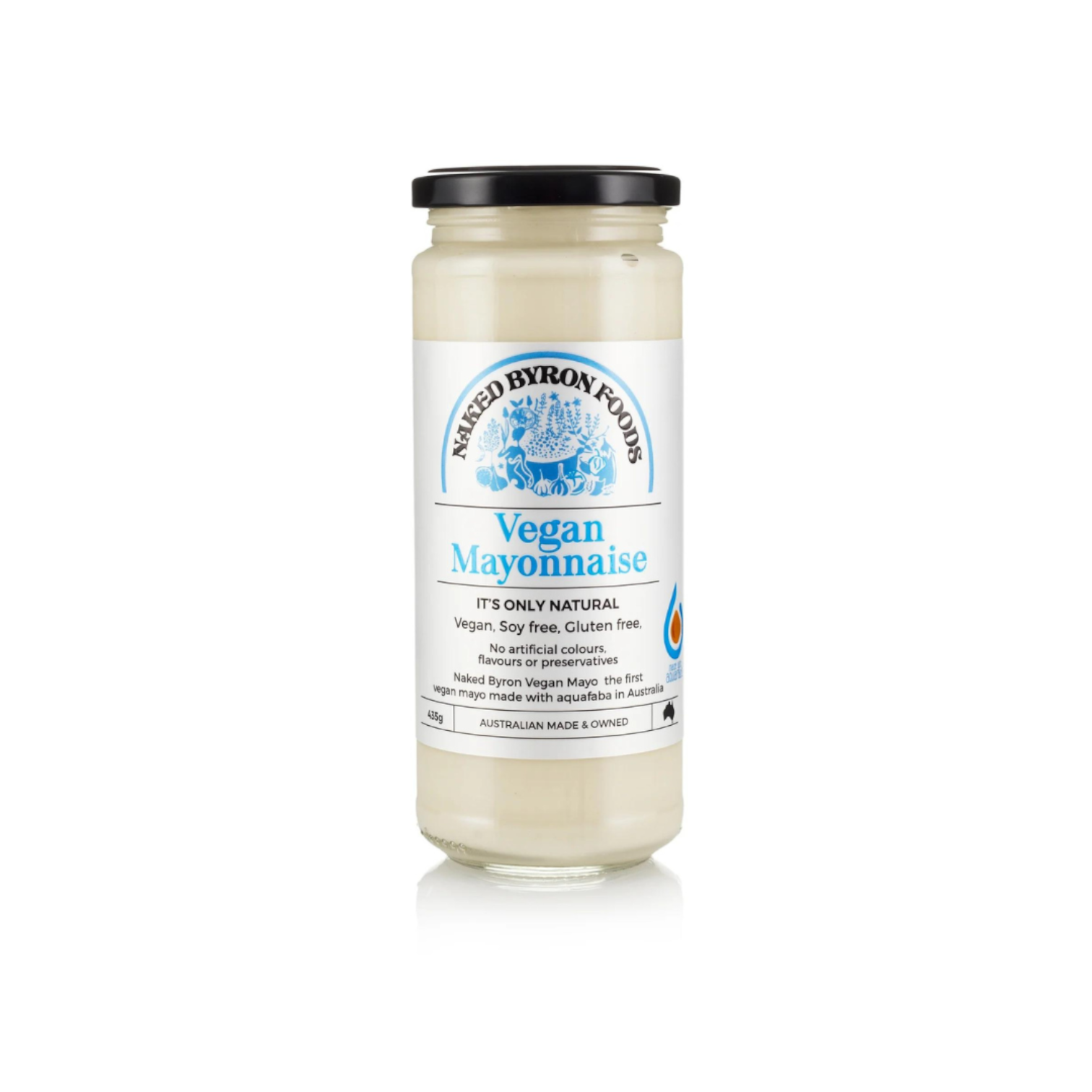 DESCRIPTION: Naked Byron Food’s Mayo is made with Australian sunflower oil and aquafaba. The range still boasts the creamy texture and consistency that everyone knows and loves, but without the processed starches and pea or soy powders.